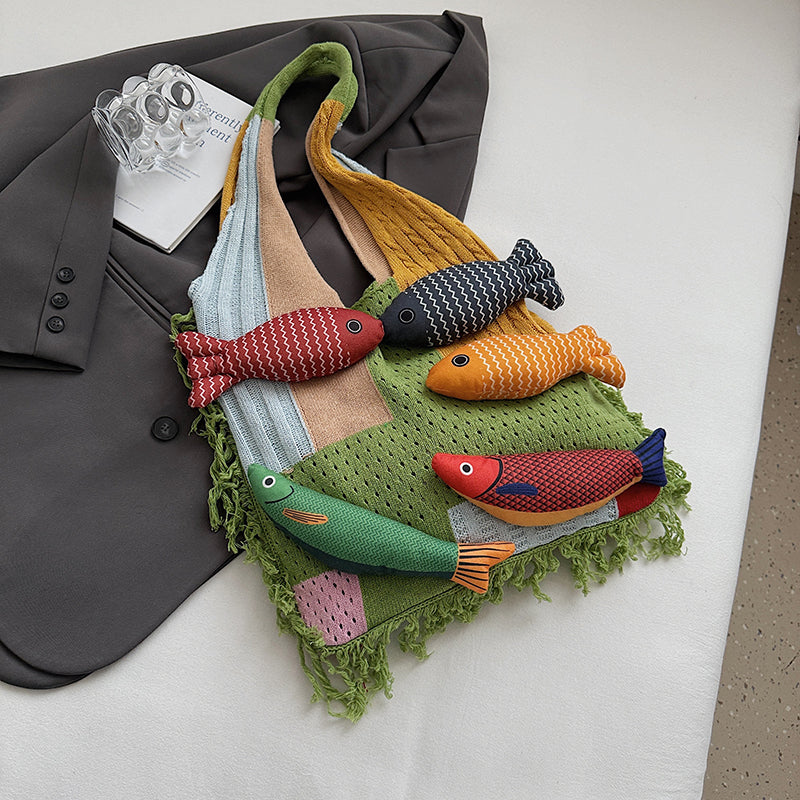 A bag that feels like a seaside daydream — with patchwork panels and playful fish accents, this tote brings the ocean with you. Soft and easy to carry, it holds all your sunny-day essentials.